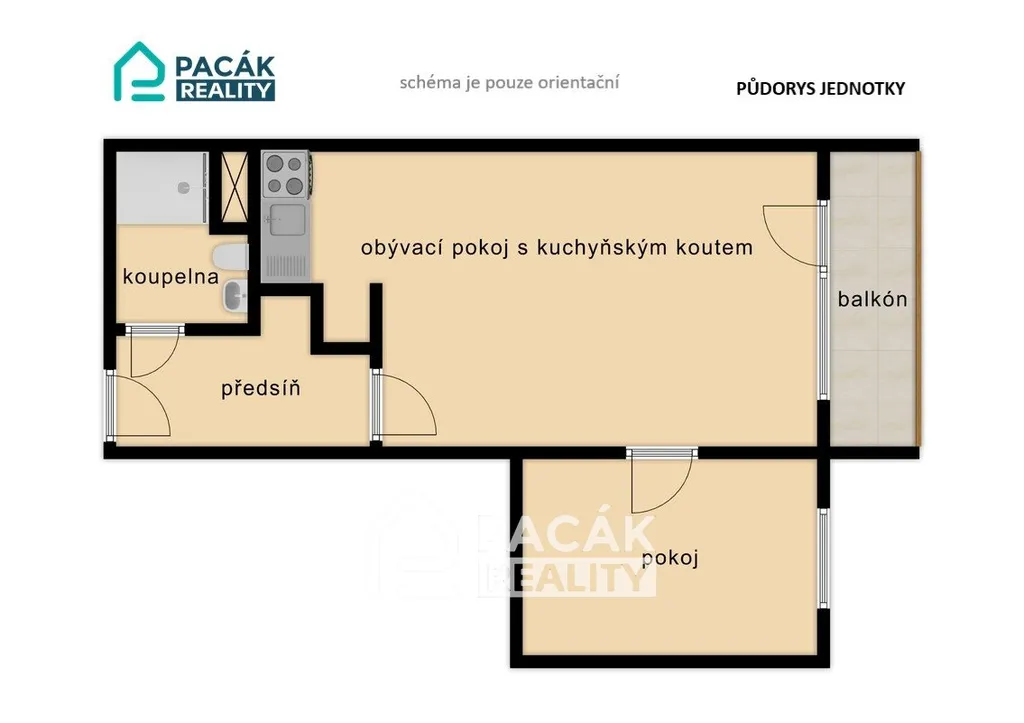Vlastní plocha bytu činí 36 m2 a k tomu 4m2 balkon orientovaný na jih + sklepní kóje v suterénu budovy.