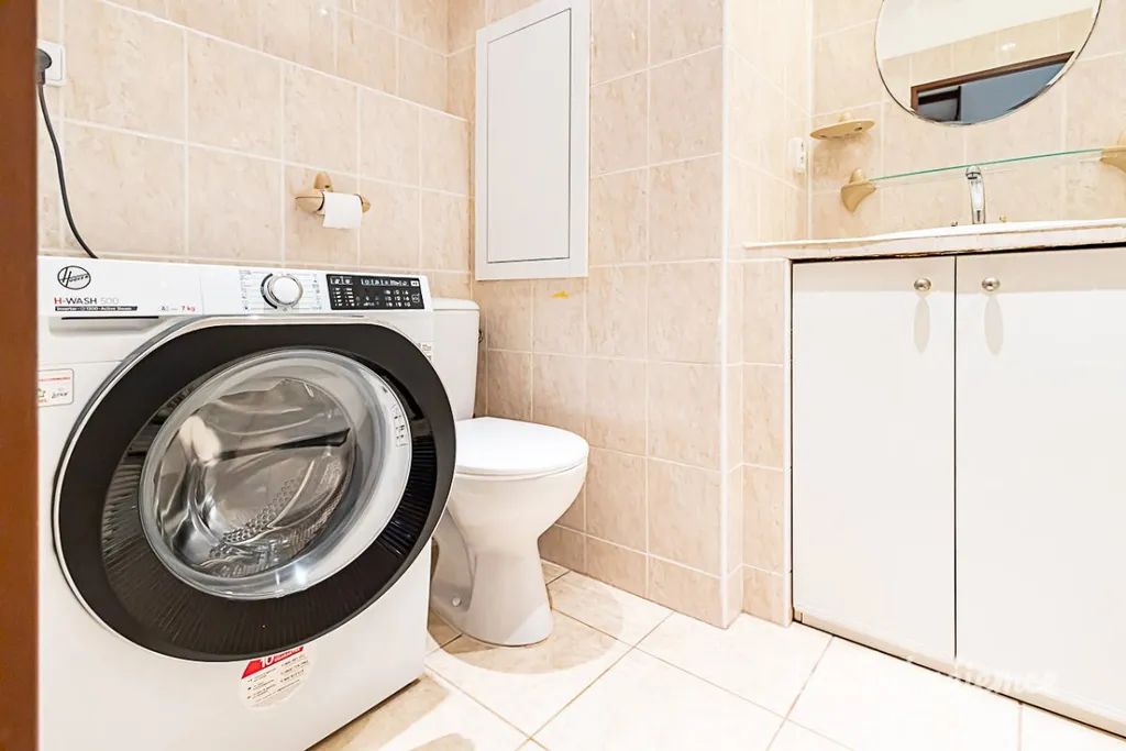 Byt je nabízen nezařízený, což dává možnost uzpůsobit si interiér podle vlastního vkusu. Kuchyně je vybavena lednicí s mrazákem, elektrickou a mikrovlnnou troubou, varnou deskou, digestoří a praktickým úložným prostorem. Obývací pokoj disponuje nejen úložným prostorem s televizí, ale také i rozměrným a světlým prostorem, který lze vybavit jak sedací soupravou, tak i například jídelním koutem. K dispozici jsou rovněž dva samostatné pokoje, které může sloužit jako ložnice. Koupelna je vybavena vanou, umyvadlem, toaletou a pračkou.