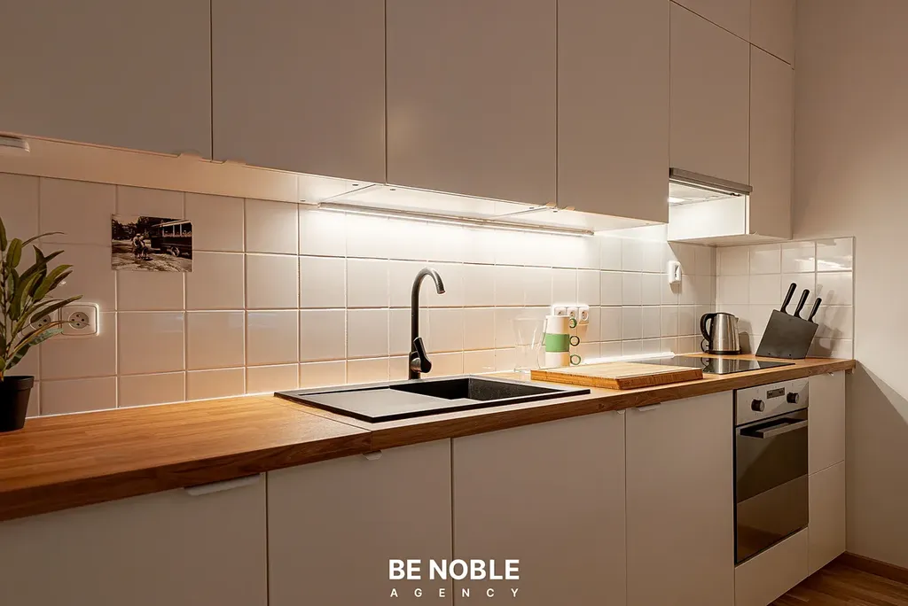Dominantou bytu je prostorný obývací pokoj (20,3 m²) se dvěma velkými okny, který působí velmi vzdušně a umožňuje snadné rozdělení na obytnou, spací a jídelní část. Kuchyňská linka je světlá, vybavená, provedená až ke stropu a doplněná příjemným podsvícením s dálkovým ovládáním a dřevěnou pracovní deskou. Byt je po čerstvé obnově – má novou dřevěnou podlahu, kompletní výmalbu, kotel po servisu a nové osvětlení, takže je připraven k okamžitému nastěhování bez nutnosti dalších investic.