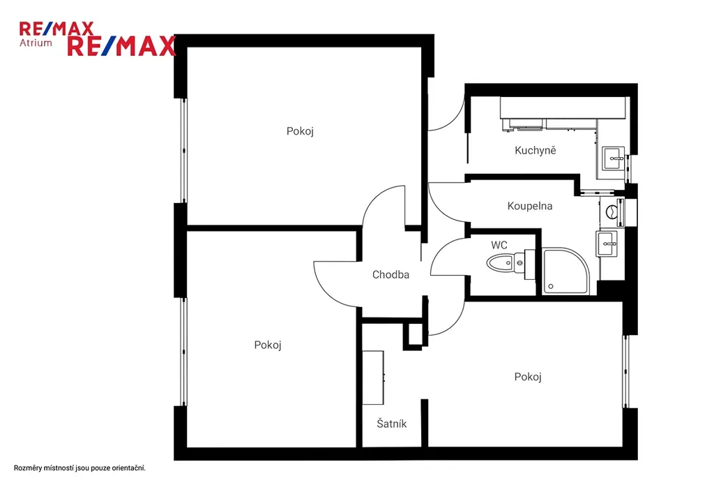 - 3 samostatně uzamykatelné pokoje / ložnice, jedna ložnice má i praktickou šatnu.