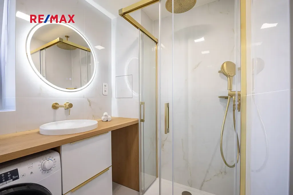 - Koupelna nabízí luxusní sprchový kout, novou automatickou pračku a velmi kvalitní provedení.