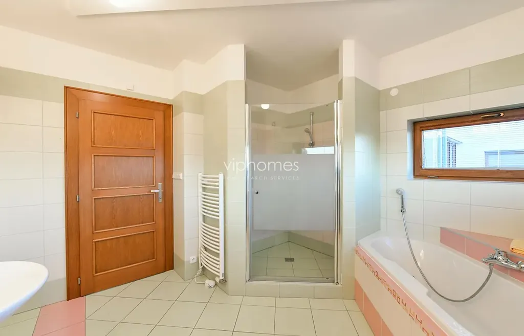 Vila vyhovuje nejnáročnějším požadavkům – bazén, vestavěné skříně, žaluzie, pračka, sušička, alarm, video intercom.