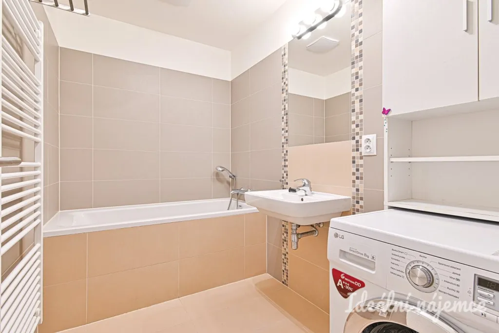 Koupelna je vybavena vanou a pračkou, toaleta je umístěna samostatně. Byt je ve velmi dobrém stavu a je vhodný pro jednotlivce nebo pár, kteří hledají moderní bydlení v klidném prostředí s dobrou dostupností do centra města.