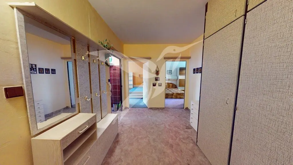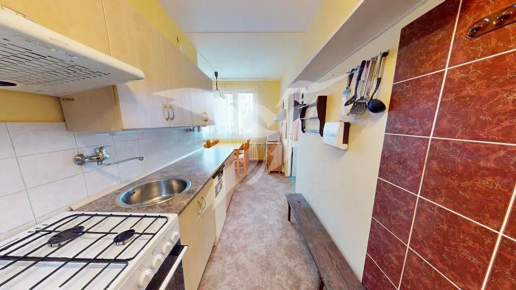 Byt o velikosti 62 m2 se nachází v 1. NP panelového bytového domu s výtahem a skládá se z předsíně, pokoje včetně kuchyňské linky, 2x samostatného pokoje, koupelny, toalety a k bytu náleží sklep a sklepní kóje situované v suterénu bytového domu. Byt se pronajímá jako zařízený a jeho součásti je kuchyňská linka se spotřebiči (kombinovaná chladnička, myčka, kombinovaný sporák + digestoř), dále automatická pračka, jídelní set, skříně a komody na úložný prostor, sedací souprava a postele (viz foto). Po domluvě je možnost část nábytku odstěhovat. Vytápění a ohřev vody je zajištěn dálkovými dodávkami.
