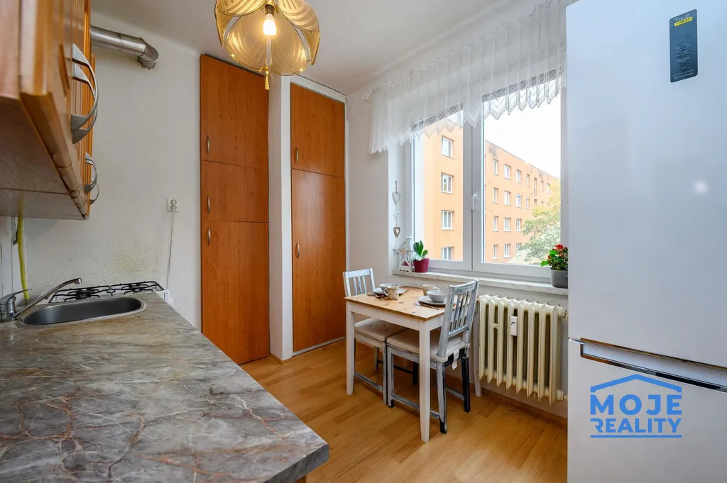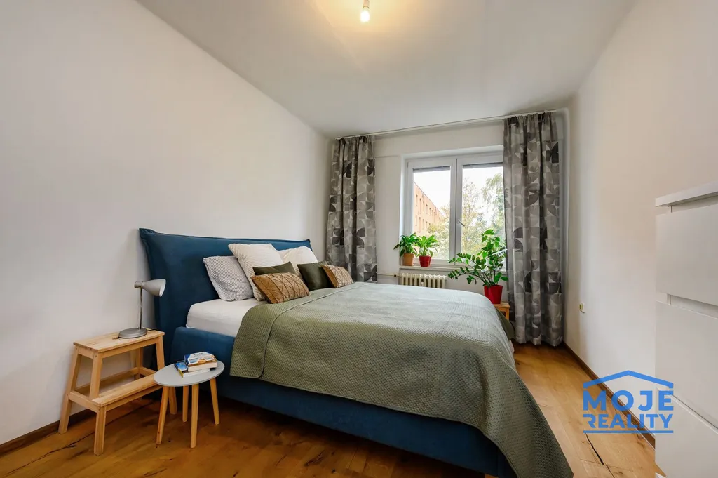 Dispozičně je řešen velmi funkčně, k praktickému bydlení přispívá samostatná toaleta. Ohřev vody zajišťuje plynový kotel a vytápění je centrální dálkové. Byt je nevybavený.
