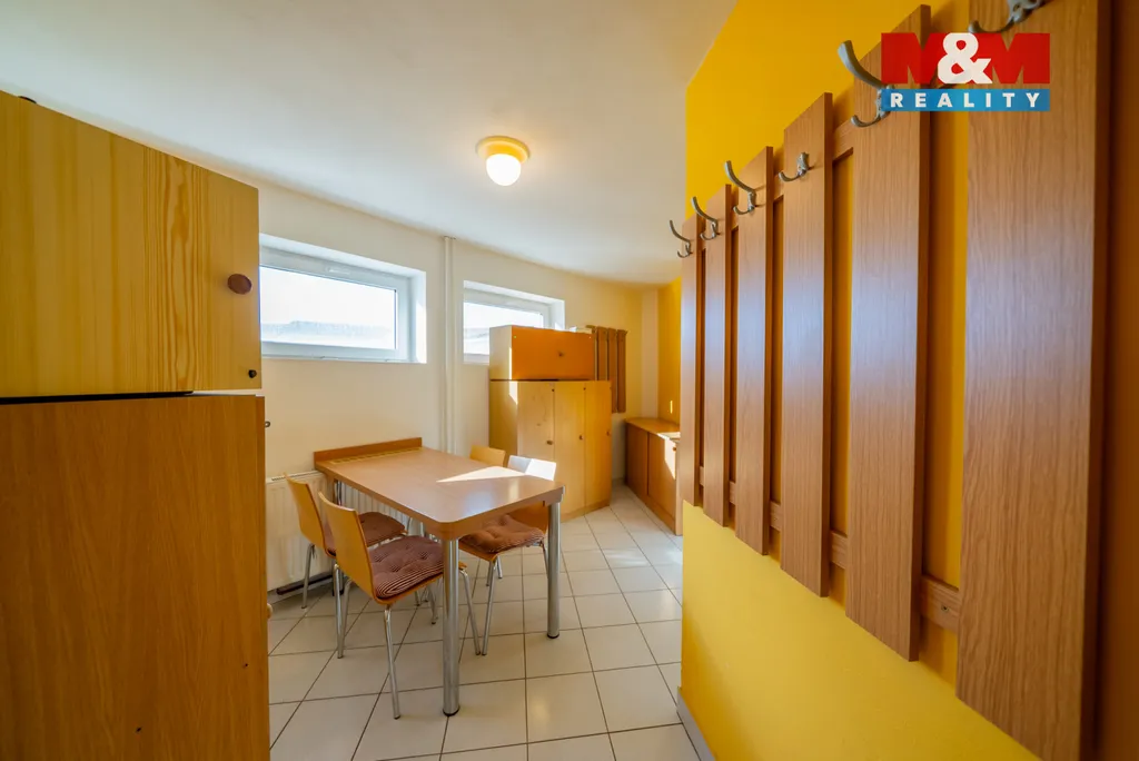 Samostatný komerční areál nabízí ideální zázemí pro firmu hledající klidné, efektivní a bezpečné prostředí s výbornou logistickou dostupností. Lokalita mimo dálnici neznamená odlehlost – naopak, přístup je plynulý a oblast nabízí dostatek kvalifikovaných pracovníků. Prostory jsou vhodné jako sídlo firmy se sklady, lehkou výrobou či kombinovaným provozem. Vytápěné a udržované prostory/sklady mají vstup z nádvoří i z administrativní části. V patře se nachází pět klimatizovaných kanceláří, kuchyňka, koupelna a toaleta o ploše cca 157 m². Vstupní část doplňuje šatna a sociální zázemí. Areál je plně samostatný a nabízí 13 uzavíratelných garáží, 4 zastřešená parkovací stání a možnost parkování možnost parkování nákladních vozidel (kamionů) na vlastním pozemku. Výhodou je také flexibilita dispozic s možností úprav či rozvoje dle potřeb nového provozu. Objekt je možné pronajmout.
