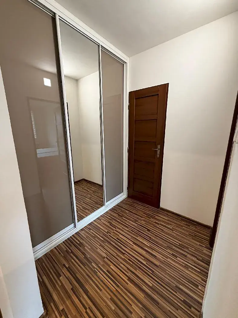 Byt má pěknou designovou koupelnu se sprchovým koutem, samostatné wc, šatna u ložnice, v předsíni jsou vestavěné skříně, na podlaze moderní plovoucí podlahy, byt je čerstvě vymalován. Pro budoucího nájemníka je k dispozici, kuch. linka se spotřebiči, nová myčka, plyn. varná deska, nová pračka atd.