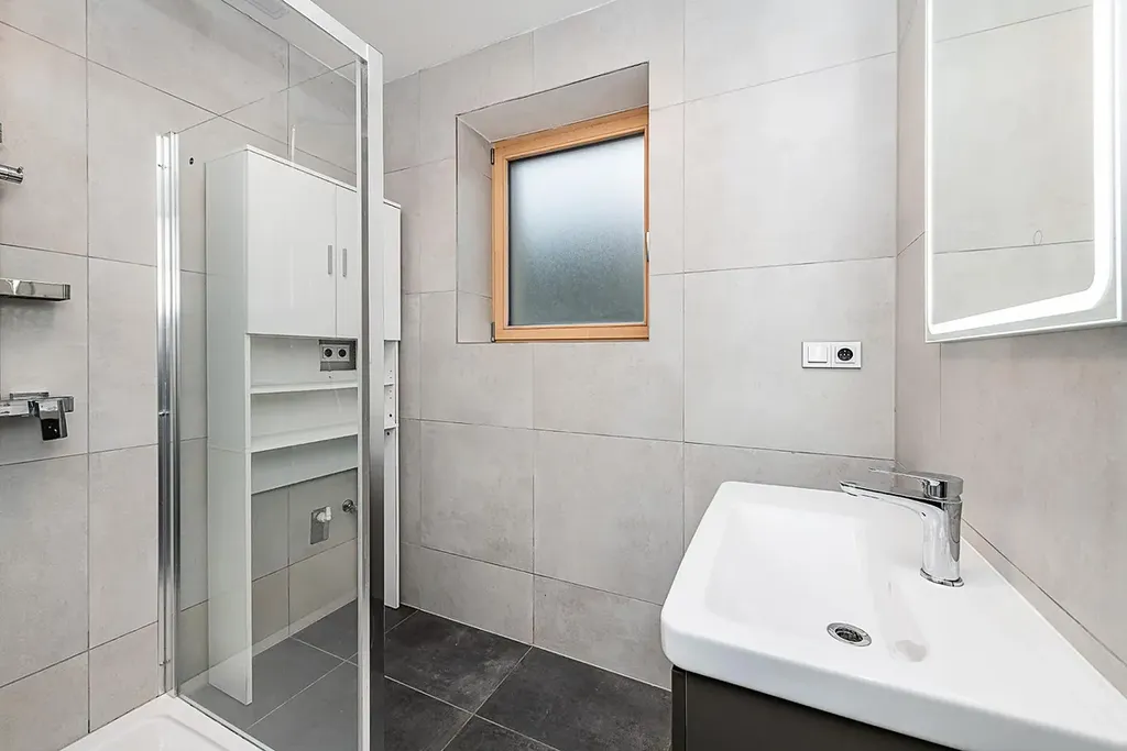 V bytě jsou lepené vinylové podlahy a keramická dlažba. Vytápění je zajištěno plynovým kotlem umístěným v suterénu domu, přičemž každý byt má své vlastní měřiče na vodu i vytápění. Všechna okna jsou nová dřevěná, ta z obytných místností jsou opatřena předokenními elektricky ovládanými žaluziemi. Celý dům je také zateplen, takže spotřeba energií je vcelku nízká. Majitelé každý rok po obdržení faktur od dodavatelů dělají všem nájemcům detailní vyúčtování.