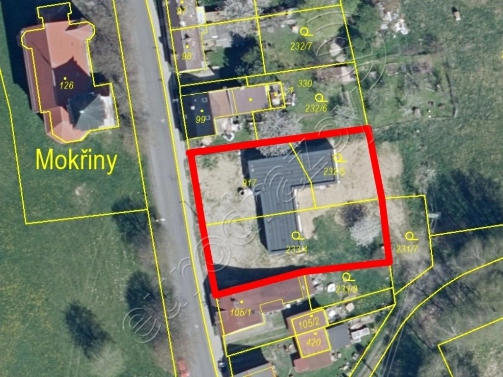 Jedná se o volně stojící, rozestavěný rodinný dům s 1.NP. Rodinný dům je nepodsklepený, zděný, přízemní, typ bungalov, zastřešený rovnou střechou, půdorysného tvaru písmene „T” o jedné bytové jednotce vel.5+kk . Jedná se o typizovaný dům od firmy GServis, Orlando 5. Za vchodovými dveřmi vlevo měla být technická místnost, podle sdělení majitele změna na pracovnu, rovně je vchod do obývacího pokoje s kuchyní. Oproti projektu je provedena změna – není vyzděna příčka u bývalé pracovny. O tento prostor je zvětšený obývací pokoj. Za vchodovými dveřmi vlevo je podlouhlá chodba, ze které je vstup do tří pokojů a koupelny s WC. Další koupelna s WC je přístupná ze zadního pokoje. Jsou dokončené základy, svislé konstrukce, zastřešení, osazena okna, balkónové a vchodové dveře, vnitřní omítky, rozvody voda, kanalizace, z větší části elektroinstalace, podlahové rozvody vytápění, z vnější části bylo započaté zateplení, osazené nádržky splachovacích záchodů tzv. geberity. Podle sdělení jsou dokončené přípojky na veřejný vodovod, splaškovou kanalizaci a elektro. PENB - „B”.