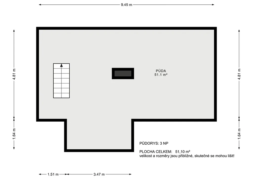 Dům má tři podlaží, sklepní prostory a dvě nadzemní podlaží o celkový podlahové ploše cca 225 m. K dispozici je také půda (51 m) vhodná k dalšímu využití a velká, rovinatá zahrada s dostatkem soukromí i prostoru pro volnočasové aktivity nebo výstavbu dalšího RD.