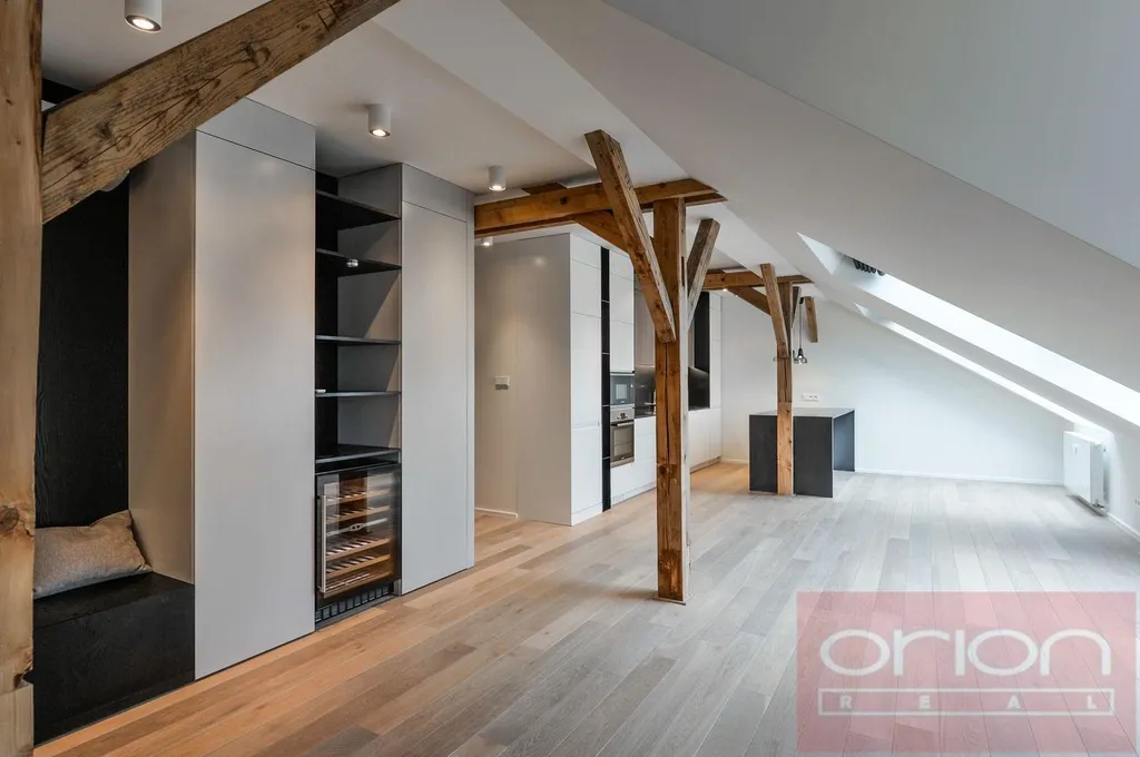 Nabízíme k pronájmu luxusní klimatizovaný byt o velikosti 3+kk v 5. patře kompletně zrekonstruovaného secesního domu s výtahem, ve vyhledávané lokalitě Praha 3 - Vinohrady, pouze pár kroků od oblíbeného parku Riegrovy sady. Nezařízený byt s celkovou plochou 156 m2 nabízí vstupní halu, obývací pokoj spojený s plně vybavenou kuchyní, 2 ložnice, komoru, koupelnu se sprchovým koutem a samostatnou toaletu. Na podlahách jsou dubové parkety a dlažba, byt je vybaven vestavěnými skříněmi, vinotékou, pračkou, sušičkou, má bezpečnostní vstupní dveře, plynový kotel. Atraktivní lokalita Vinohrad s veškerou občanskou vybaveností a výborným dopravním spojením. V okolí je množství restaurací, barů, bister, lokálních obchodů, nákupní centrum Flora. Na náměstí Jiřího z Poděbrad se pravidelně konají farmářské trhy. Byt je situován jen pár minut od tramvajové zastávky a stanice metra Jiřího z Poděbrad, Okolí nabízí spoustu zeleně, ideální podmínky pro sportovní vyžití i relaxaci. V ceně nájmu zahrnuto jedno parkovací stání. Možnost zařídit byt nábytkem za vyšší nájem. Nájem 3.665 Eur.