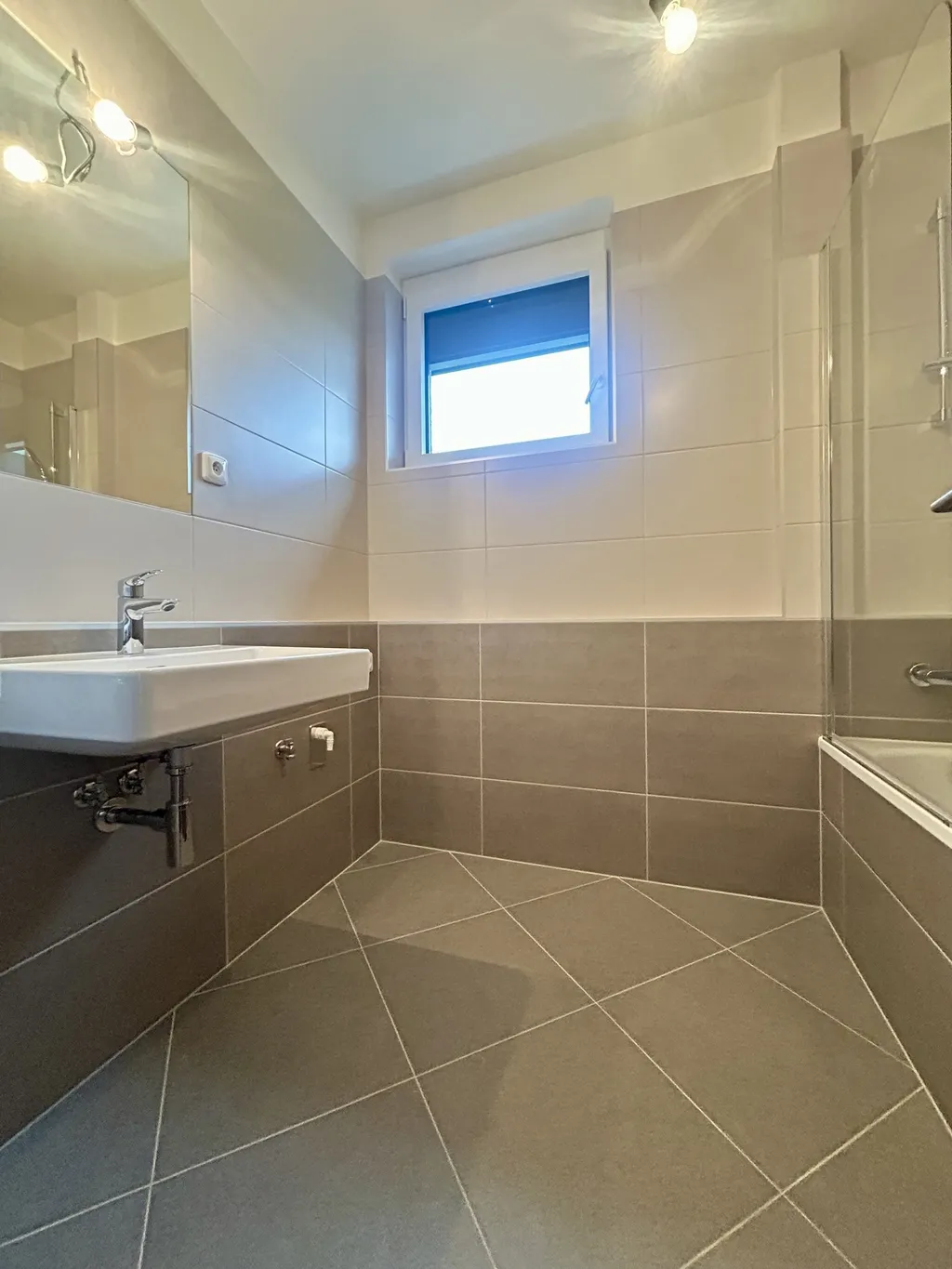 Byt nabízí dostatek úložných prostor díky praktické komoře umístěné v bytě a sklepu. Koupelna je vybaven vanou, umyvadlem, topným žebříkem a přípravu na pračku i sušičku. Samostatná toaleta. Všechna okna jsou vybavena elektrickými žaluziemi.