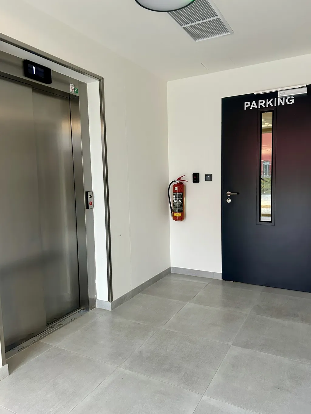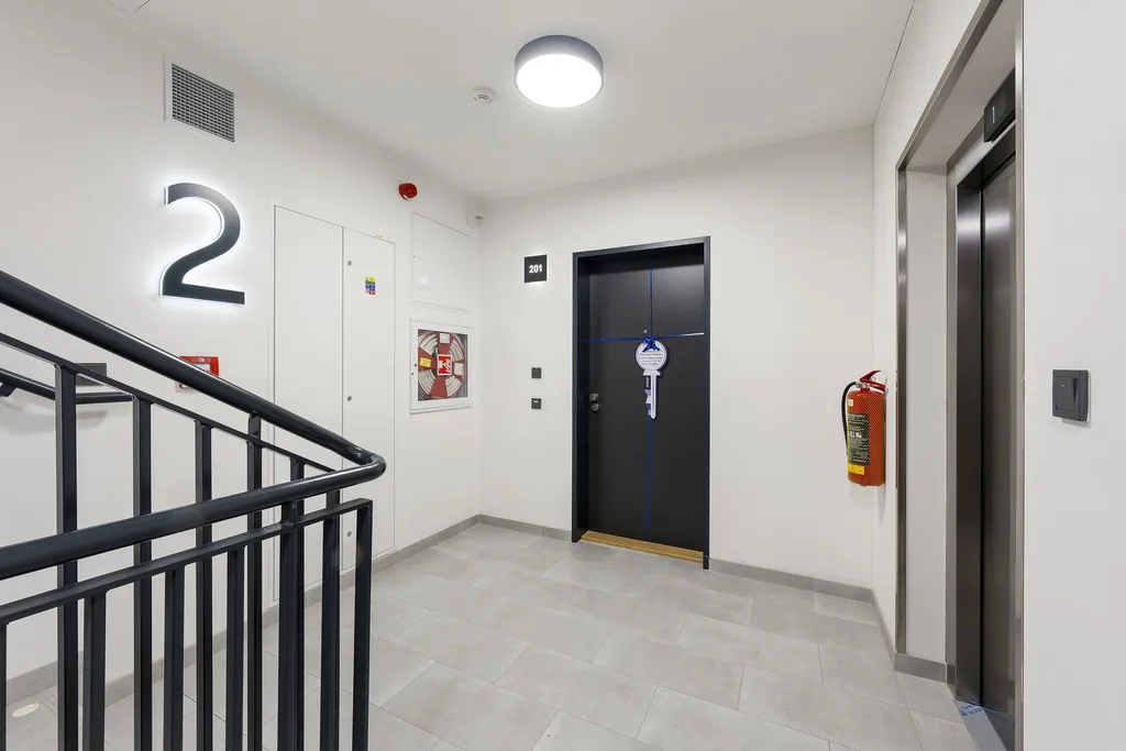 Byt je proveden ve vysokém standardu s důrazem na kvalitu materiálů i praktické využití prostoru. Vstupní část je vybavena bezpečnostními protipožárními dveřmi značky Sapeli a videotelefonem. Interiér doplňují elegantní interiérové dveře Sapeli. Byt je vybaven moderní kuchyňskou linkou včetně vestavných spotřebičů: varné desky, digestoře, trouby, myčky, lednice, mrazáku a mikrovlnné trouby.
