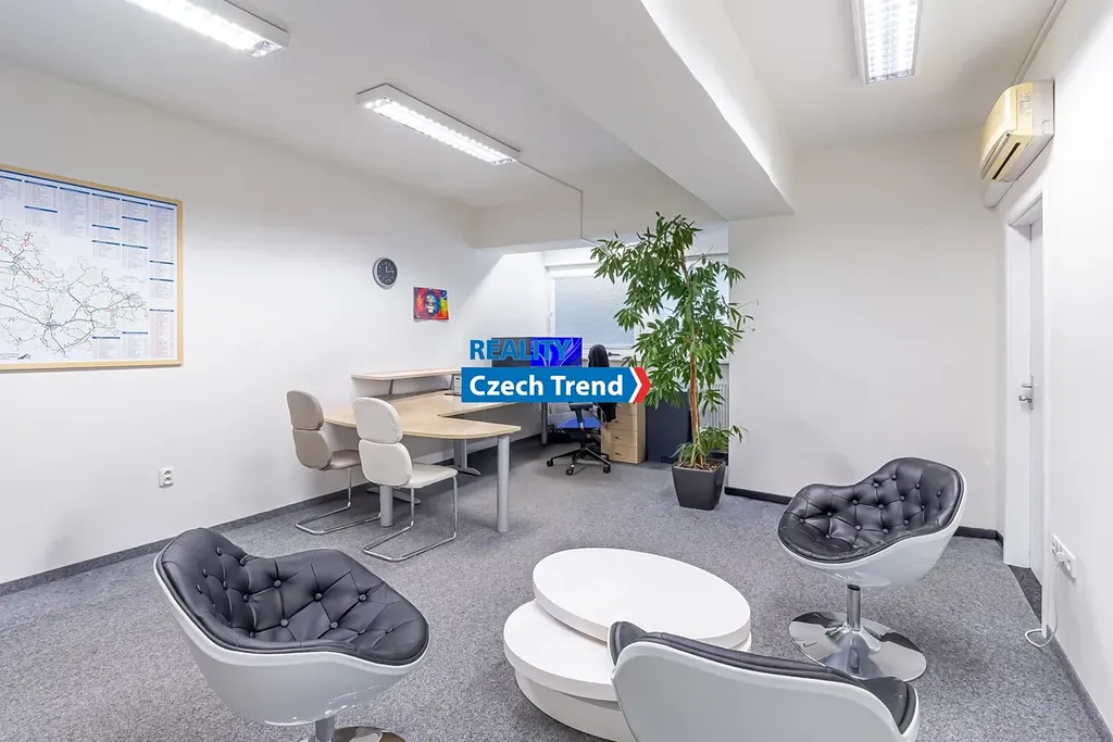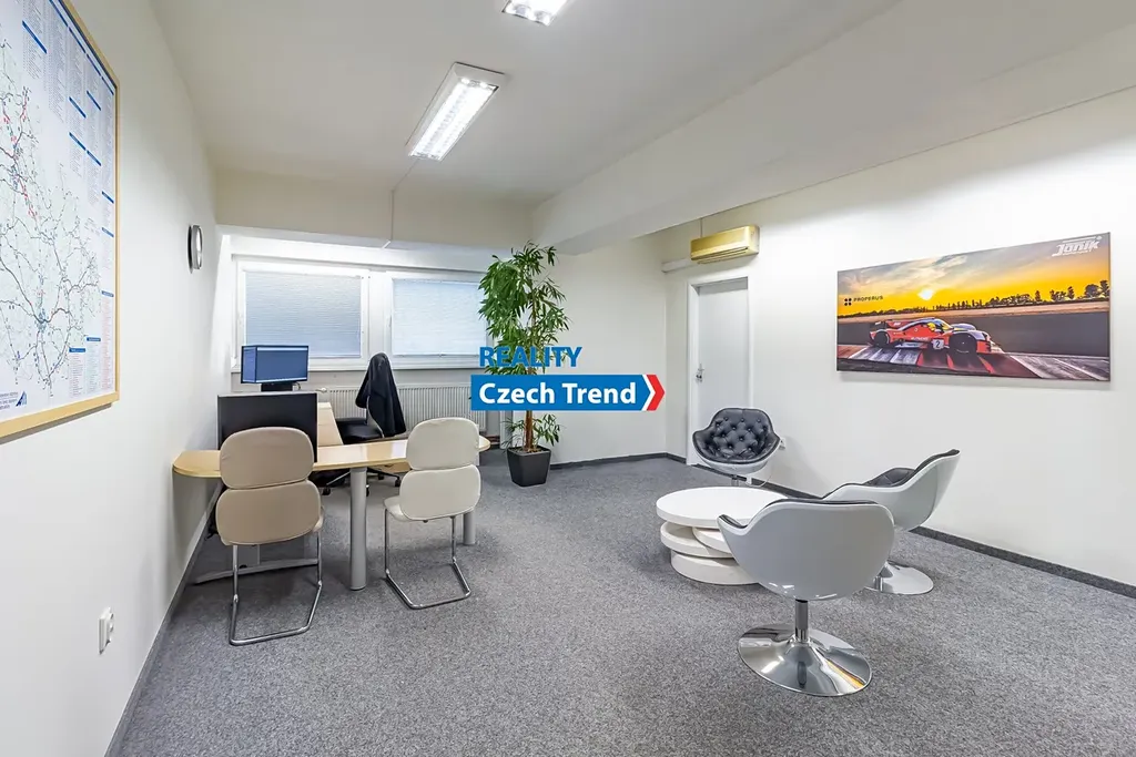 Pronájem tří propojených kanceláří 52,3 m², 20,3 m a 31,8 m² ve 4 patře budovy GRAPO. (celkem 104.4m²) Součástí nájmu je parkovací místo, elektřina, teplo, internet, elektronické zabezpečení, možnost užívání kuchyňky, společného sociálního zázemí, úklidu prostor 1 x týdně, možnosti využívání stravování ve společné jídelně v budově ve vedlejší budově. Recepce je k dispozici po až pá 8-16:30 hodin. Připojení k internetu v rozsahu 100Mb/100Mb. Měsíční pronájem je 220Kč/1 m², měsíčně celkem 22 968Kč + energie dle měsíční spotřeby.