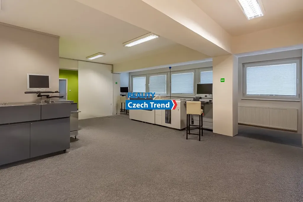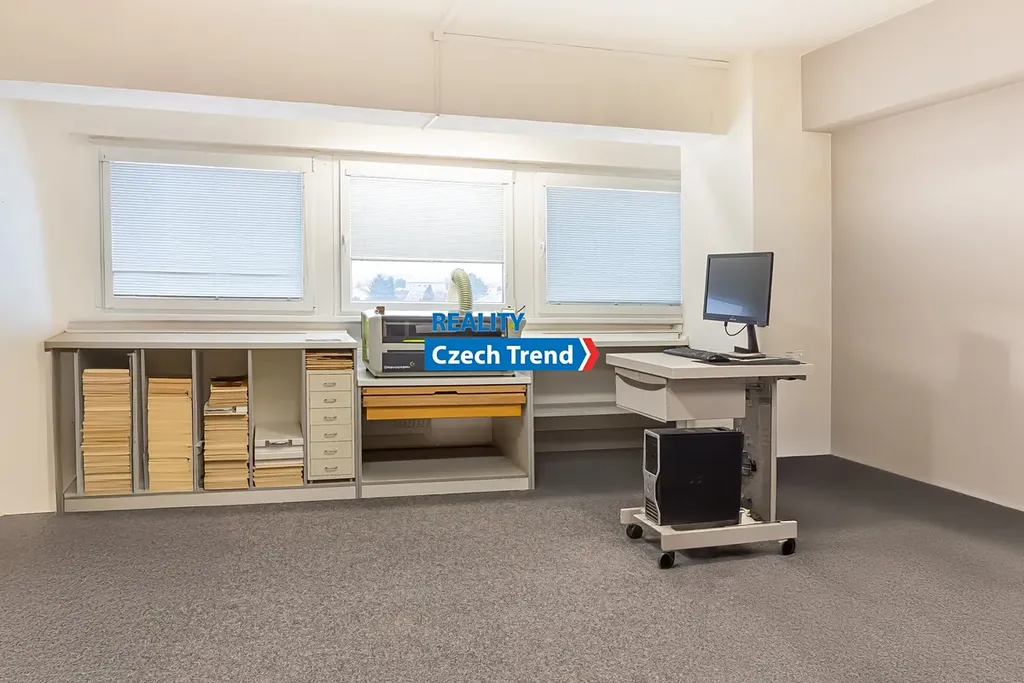 Pronájem kanceláří 33,9m² + 13 m² + 30.7m² ve 4.NP, patře budovy GRAPO. celkem 77,56m². Součástí nájmu je parkovací místo, elektřina, teplo, internet, elektronické zabezpečení, možnost užívání kuchyňky, společného sociálního zázemí, úklidu prostor 1 x týdně, možnosti využívání stravování ve společné jídelně v budově ve vedlejší budově. Recepce je k dispozici po až pá 8-16:30 hodin. Připojení k internetu v rozsahu 100Mb/100Mb. Měsíční pronájem včetně energií je 220Kč/1 m², měsíčně celkem 17 063Kč + energie dle měsíční spotřeby.