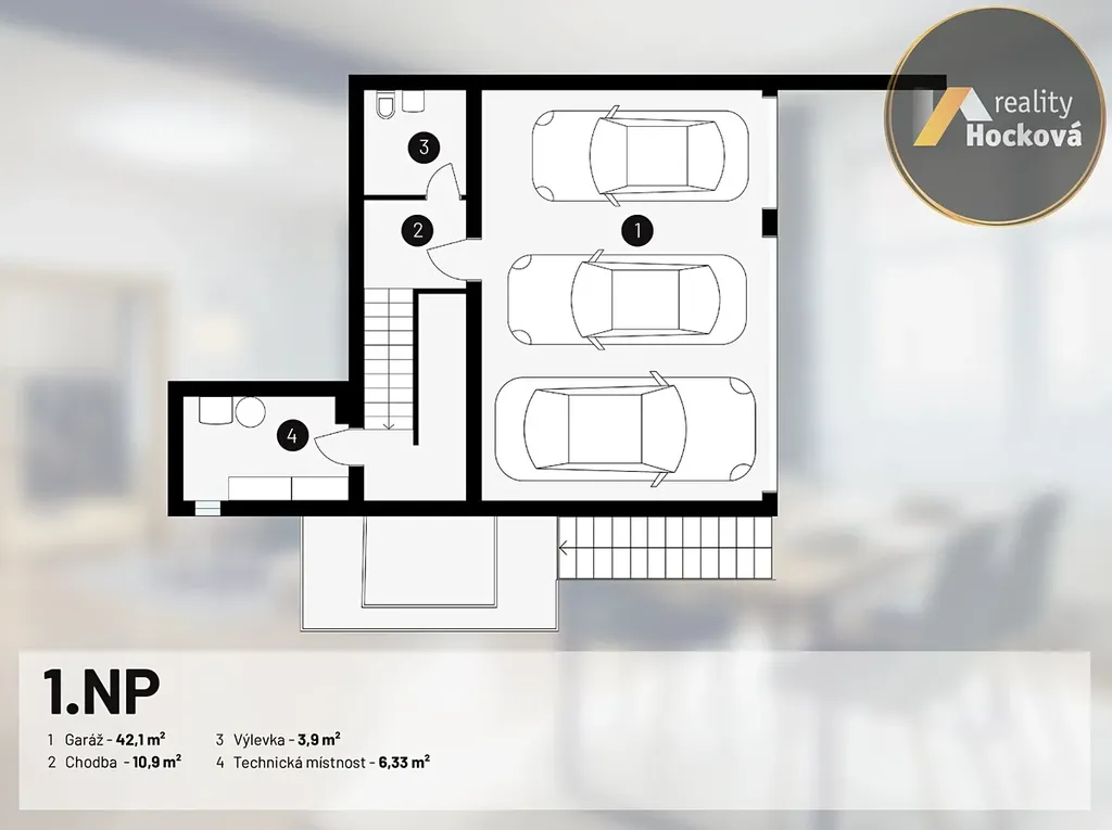 Jedno parkovací místo v garáži s možností uskladnění kol.