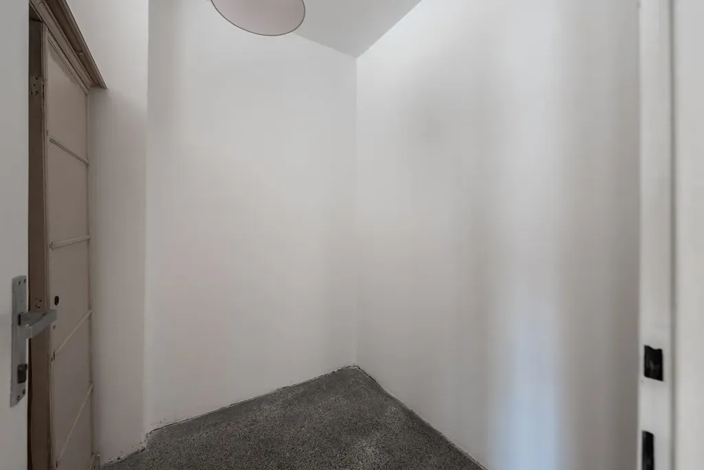 Součástí bytu je navíc menší pokoj původně určený pro služku, typický prvek domů této éry. Tento prostor je bez okna, není veden jako obytný pokoj, a dnes se ideálně hodí jako pracovna, šatna, archiv, úložný prostor nebo klidné zázemí pro home office. Právě tento detail dává bytu funkční přidanou hodnotu nad rámec běžného 3+1.