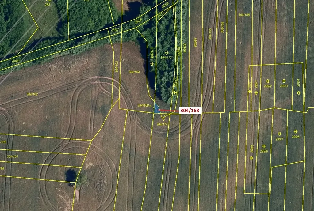 Orná půda o výměře 16 m2, parcelní číslo 304/168, podíl 1/1, katastrální území Hrubšice, obec Ivančice, obec s rozšířenou působností Ivančice, okres Brno-venkov, Jihomoravský kraj.