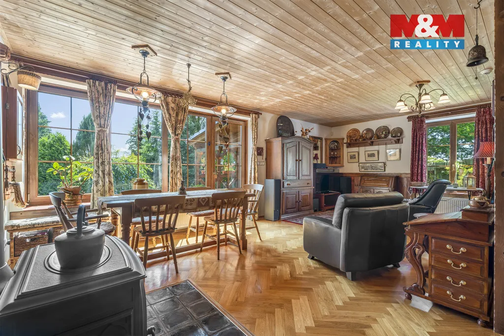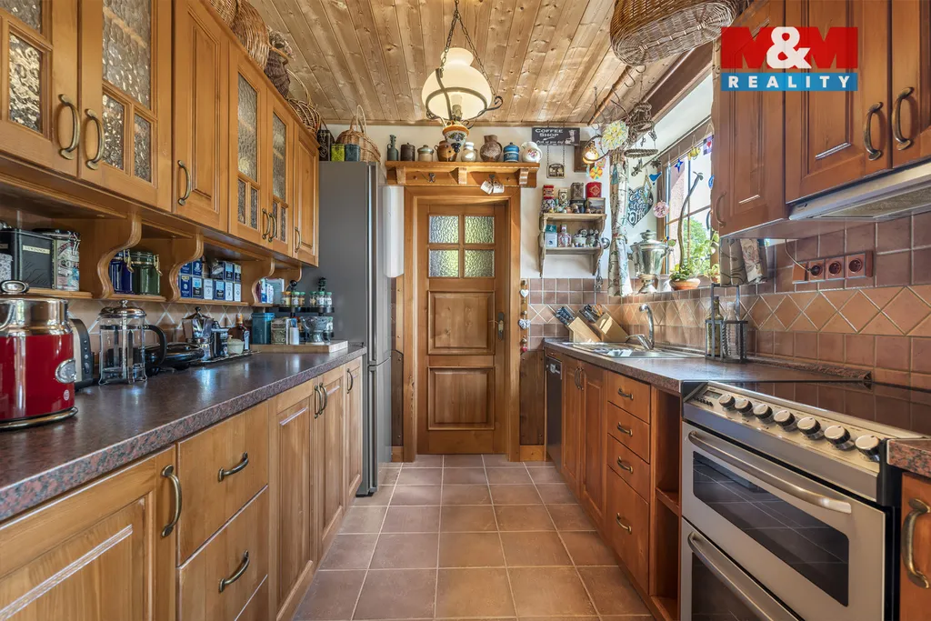 SLEVA !!! Nabízíme k prodeji atraktivní novostavbu rodinného domu v klidné a žádané lokalitě České Kamenice. Dům o užitné ploše 138 m² je situován na upraveném pozemku o rozloze 799 m² s okrasnou zahradou, která poskytuje dostatek soukromí i prostoru pro relaxaci a rodinné aktivity. V přízemí domu se nachází moderní kuchyň, prostorný obývací pokoj propojený s jídelnou a přímým vstupem na slunnou terasu s pergolou, ideální pro posezení s rodinou či přáteli. Dále je zde koupelna se sprchovým koutem. V patře najdete komfortní ložnici, dva samostatné pokoje vhodné jako dětské či pracovny, a druhou koupelnu vybavenou vanou a WC. Půda je přístupná zateplenými, stahovacími schody a nabízí další úložný prostor. Interiér domu je laděn v přírodních tónech s důrazem na kvalitu použitých materiálů – v obytných místnostech jsou dubové parkety, stropy a podkroví jsou obloženy dřevem, točité schodiště i zábradlí jsou rovněž z masivního dubu. Dům je vybaven elektronickým zabezpečovacím systémem (EZS).