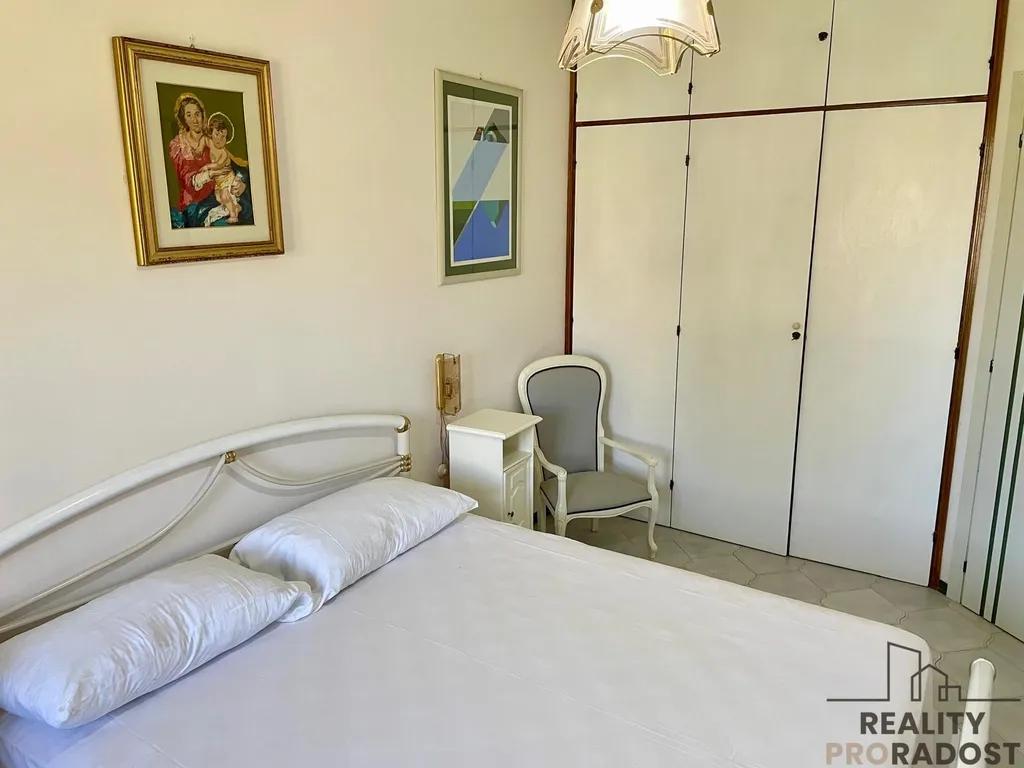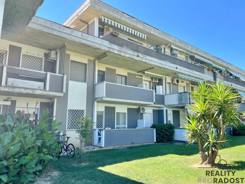 Byt se nachází v 1. patře budovy bez výtahu. Dispozice zahrnuje vstupní terasu – dostatečně prostornou pro posezení nebo stolování –, světlý obývací pokoj s kuchyňským koutem, koupelnu a dvě pohodlné ložnice. Jedna z ložnic navíc disponuje vstupem na soukromý balkon, odkud je možné si užívat lehký mořský vánek a nádherné výhledy na okolní zeleň i otevřený prostor kolem rezidence. Byt je ve velmi dobrém technickém stavu, vybaven praktickými vestavěnými skříněmi a orientován na sever a jih, což zajistí příjemné oslunění během dne i příjemný chládek v letních měsících. Budova byla postavena v roce 1983.