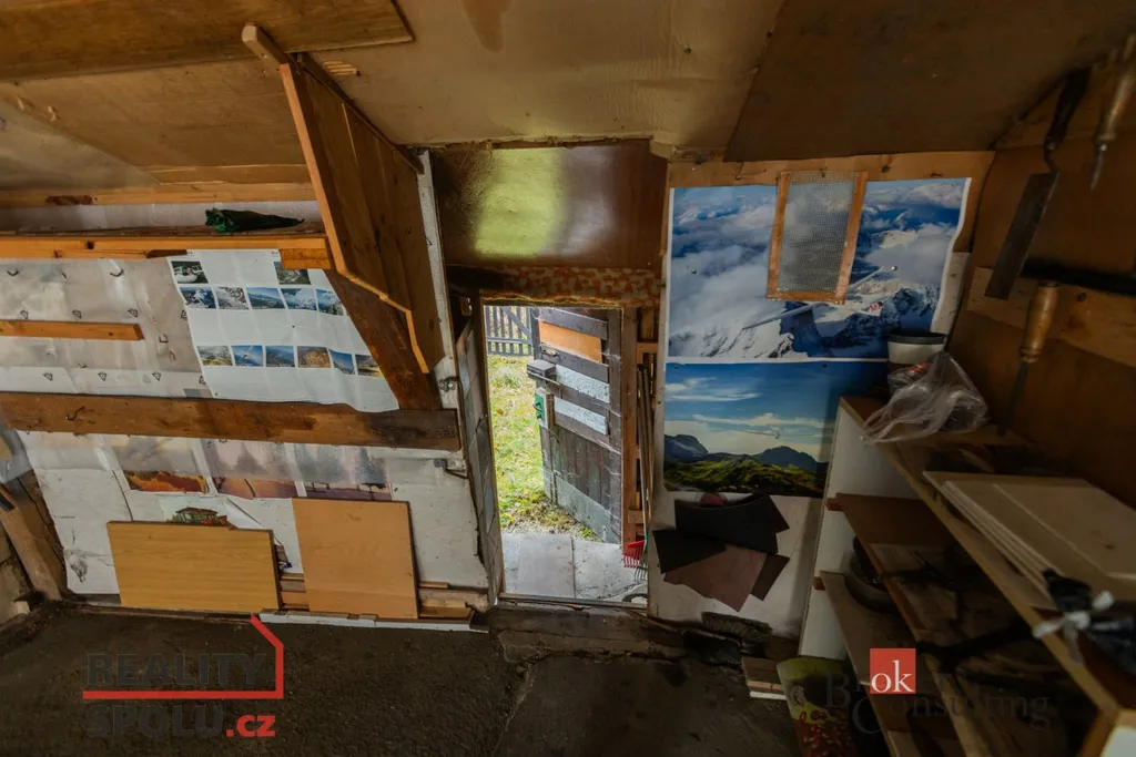 K bytu náleží kolna a dva sklepy. Možnost pronájmu garáže/dílny s parkováním před garáží. Roční pronájem je ve výši pouhých 109 Kč. Garáž je průchozí k posezení a má přímý vstup do lesa. Část pozemku/lesa za garáží náleží majiteli a je taktéž součástí prodeje.