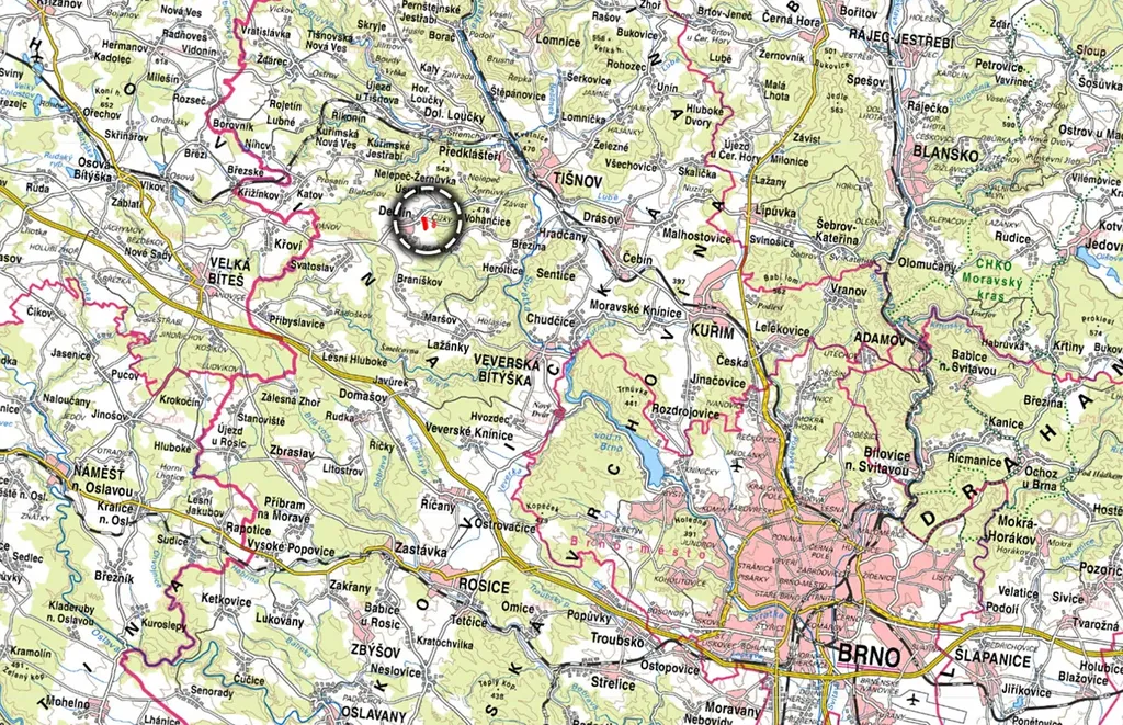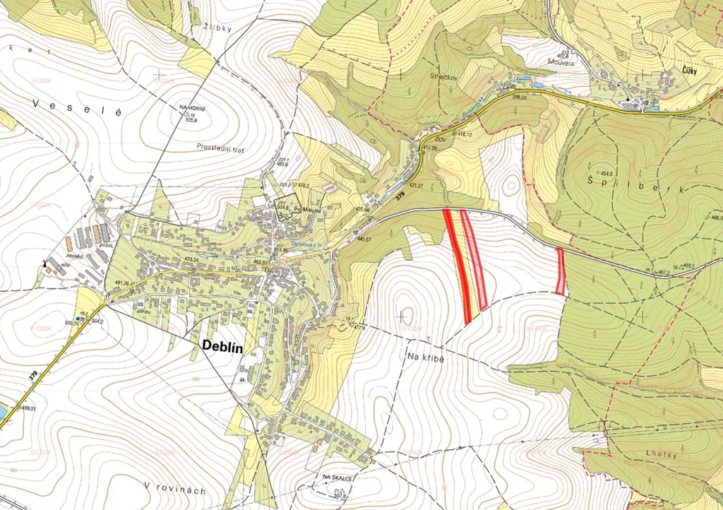 Pozemky jsou přístupné z cesty a leží v jednom bloku východně od obce Deblín.