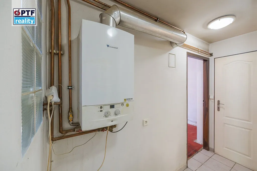 Nemovitost je napojena na všechny inženýrské sítě (elektřina, vodovod, kanalizaci i plyn). Vytápění zajišťuje plynový kotel Junkers, ohřev vody elektrický bojler.