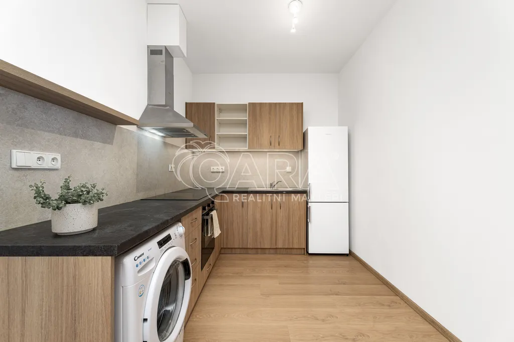 Dispozice bytu nabízí obývací pokoj s kuchyňským koutem, který je vybaven kuchyňskou linkou včetně vestavěné elektrické trouby, lednice, indukce a pračky. Z obývacího pokoje vede francouzské okno, které zajišťuje dostatek denního světla. Ložnice je samostatná a tichá, s výhledem na Beskydy. Koupelna je vybavena sprchovým koutem a toaletou.