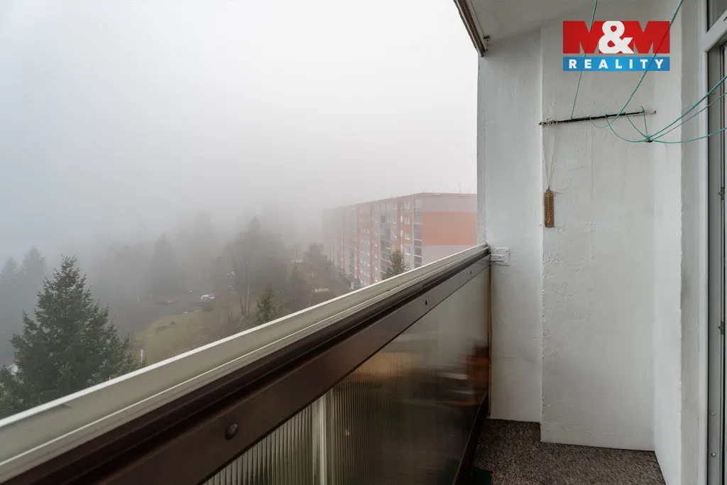 Dispozice bytu nabízí prostornou předsíň s praktickou komorou, samostatnou ložnici, obývací pokoj se zasklenou lodžií a kuchyni. Díky umístění ve vyšším patře má byt pěkný výhled do okolí a dostatek světla. Dům je situován v klidné části města s dobrou dostupností občanské vybavenosti, autobusového i vlakového nádraží a zároveň v blízkosti přírody Jizerských hor.