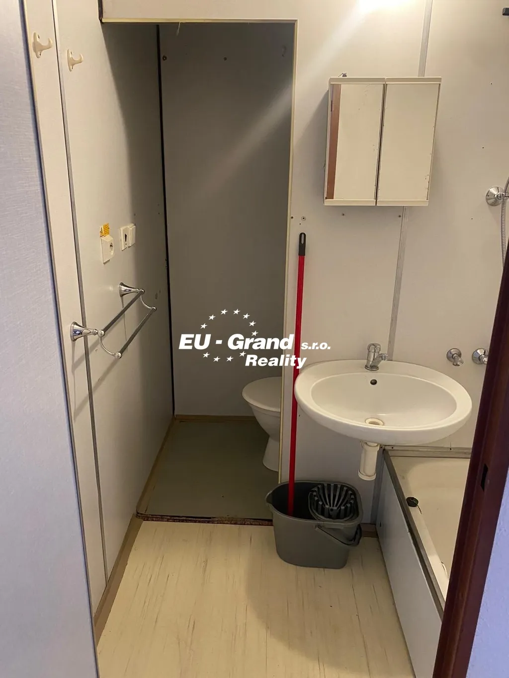 Dispozice: obývací pokoj, kuchyňskou linku, WC se sprchovým koutem, předsíň.