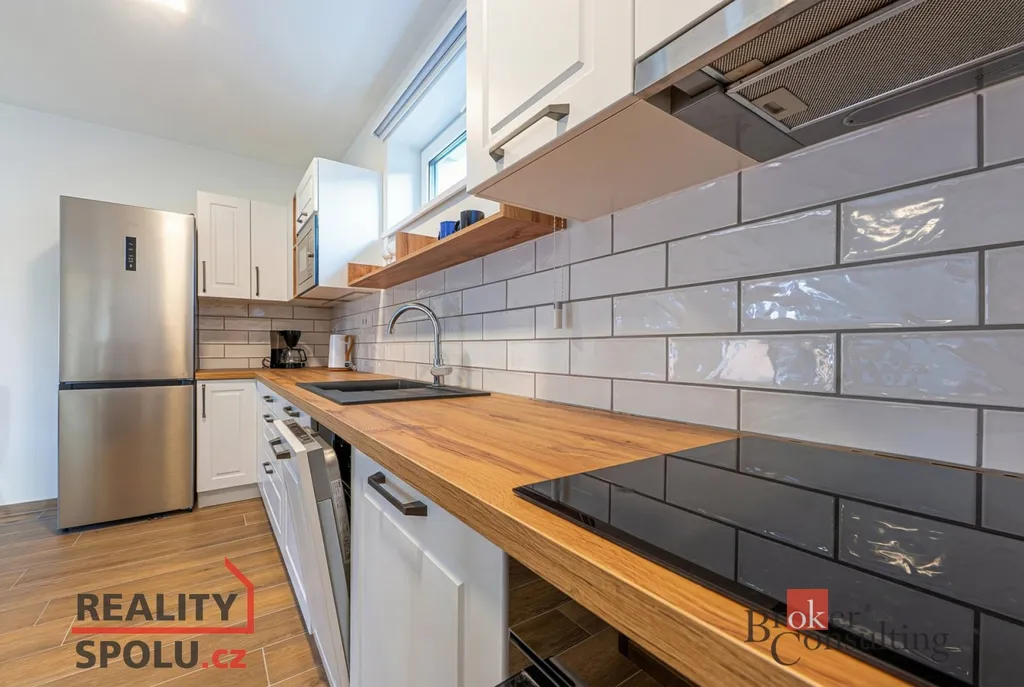 Součástí prodeje je kuchyňská linka se spotřebiči, vestavěný nábytek na míru v předsíni, internetové připojení včetně rozvodů ethernetu, elektrické venkovní rolety, sítě proti hmyzu, LED osvětlení a kamerový systém. K dispozici je také půdní úložný prostor cca 17 m².