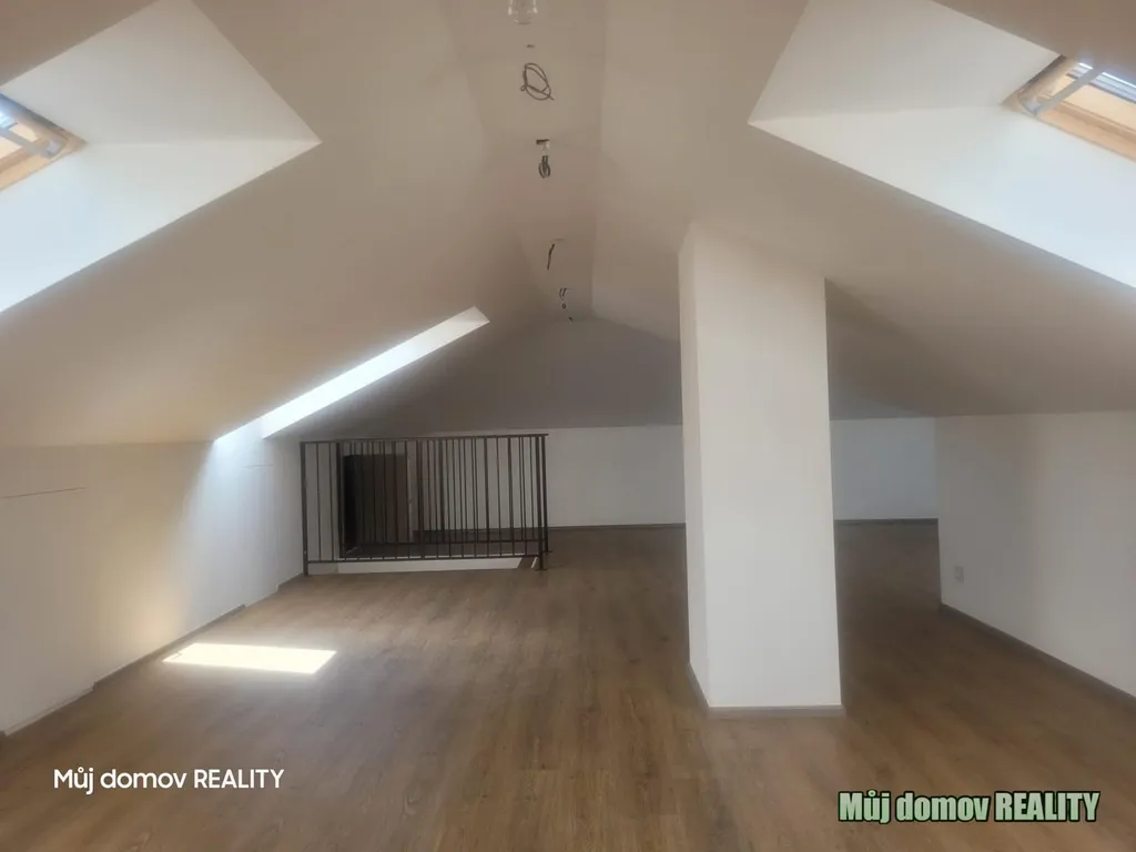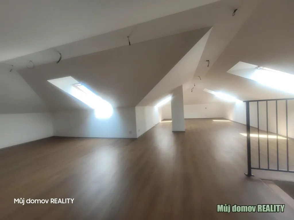 Podkroví o velikosti 65 m, světlý prostor vhodný jako pracovna, herna nebo pokoj pro hosty.