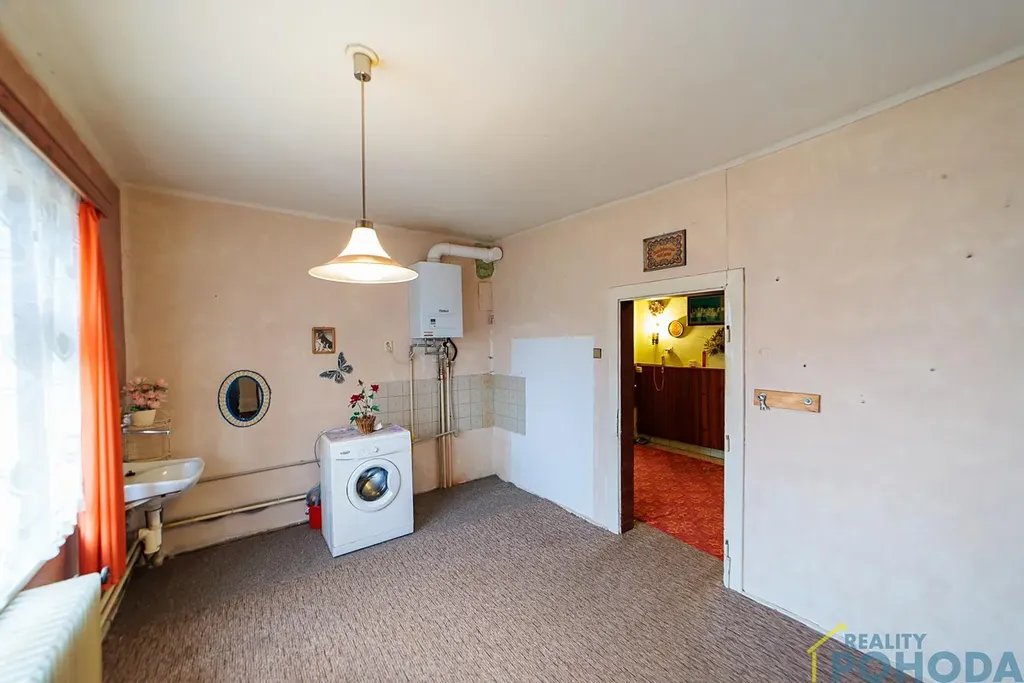 1. NP (4+1): prostorná obytná část kuchyně, obývací pokoj s krbovými kamny, a zejména přístavba z roku 1974 zde najdete velkou koupelnu s vanou i sprchovým koutem, toaletu, spíž a další obytný pokoj