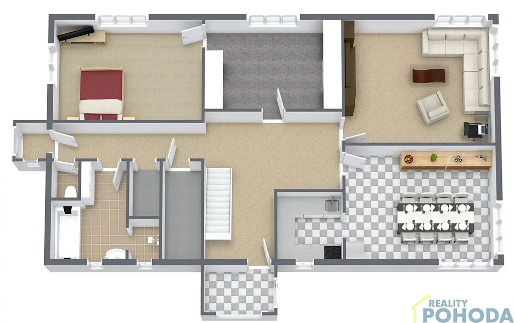 Dům nabízí promyšlené dispoziční řešení 5+1: