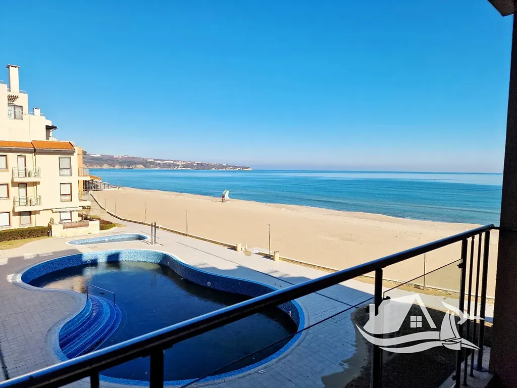 Nabízíme vám jedinečnou příležitost ke koupi prostorného apartmánu s jednou ložnicí, který se nachází v prestižním komplexu přímo na první linii u moře ve městě Obzor. Apartmán o celkové ploše 69 m² je situován ve třetím patře a nabízí dechberoucí výhled na moře, pláž i na pečlivě udržované vnitřní prostory komplexu s bazénem.
