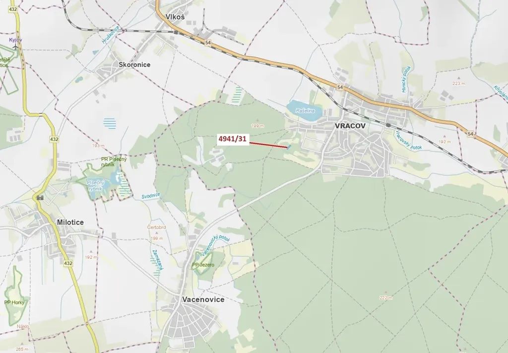 Lesní pozemek o výměře 2231 m2, parcelní číslo 4941/31, podíl 1/1, katastrální území Vracov, obec Vracov, obec s rozšířenou působností Kyjov, okres Hodonín, Jihomoravský kraj.