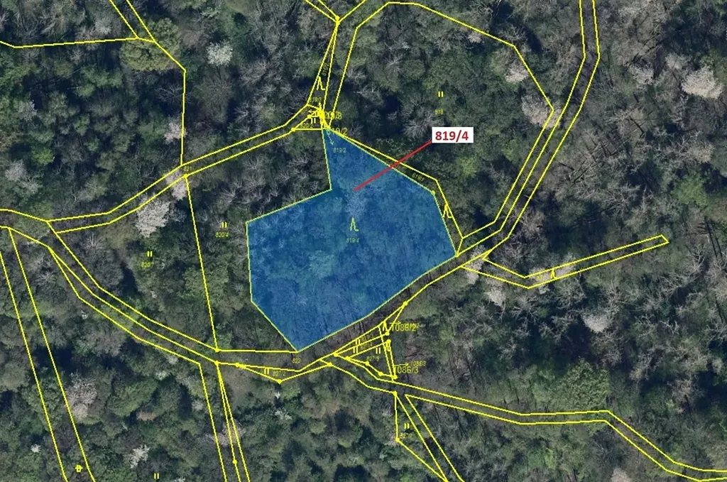 Lesní pozemek o výměře 2 875 m2, parcelní číslo 819/4, podíl  9/10, katastrální území Zubrnice, obec Zubrnice, obec s rozšířenou působností Ústí nad Labem, okres Ústí nad Labem, Ústecký kraj. Po těžbě.