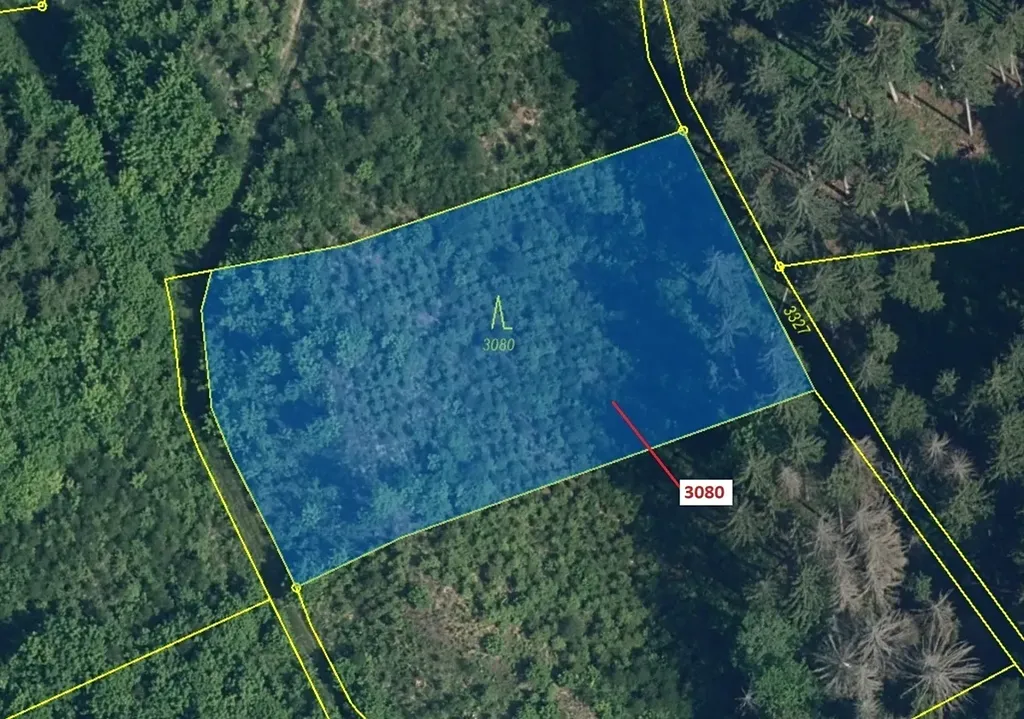 Lesní pozemek o výměře 2540 m2, parcelní číslo 3080, podíl 1/1, katastrální území Benešov u Semil, obec Benešov u Semil, obec s rozšířenou působností Semily, okres Semily, Liberecký kraj.