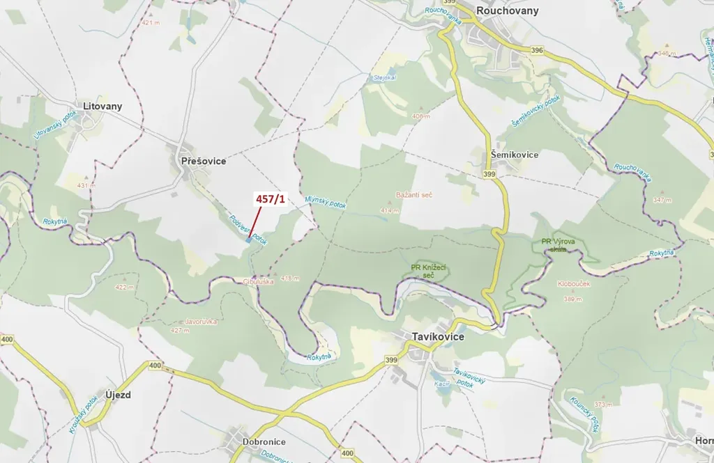 Dražba lesa, Přešovice, 4115 m2 (ID: 4137150)