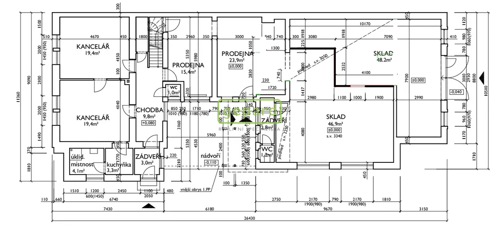 Objekt je vhodný zejména pro obchodní společnosti, e-shopy, servisní firmy, případně jako zázemí pro menší distribuční centrum.