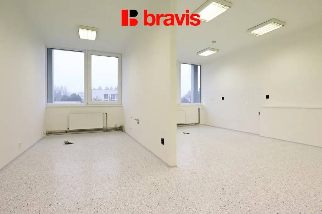 Prostory o celkové ploše 74,2 m² se nacházejí v 3. nadzemním podlaží a skládají ze tří samostatných místností: