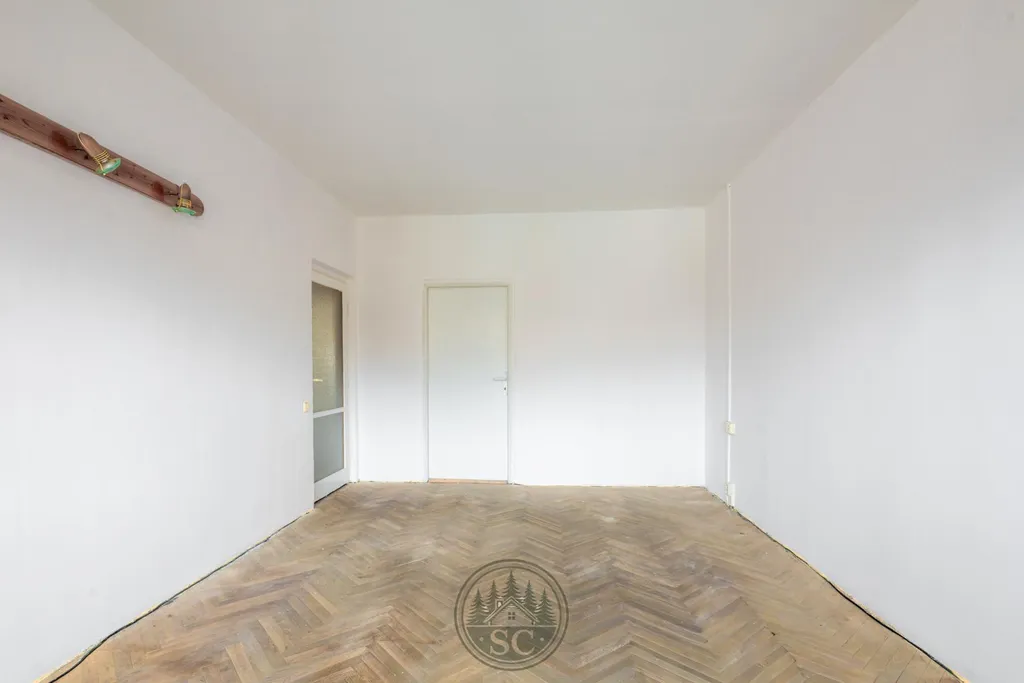 V obytných pokojích jsou parkety z kvalitního tvrdého dřeva, které mají charakter a dlouhodobý potenciál. Po vybroušení a novém lakování by znovu vynikla jejich přirozená kresba a dokázaly by po mnoho dalších let dotvářet atmosféru pokojů.