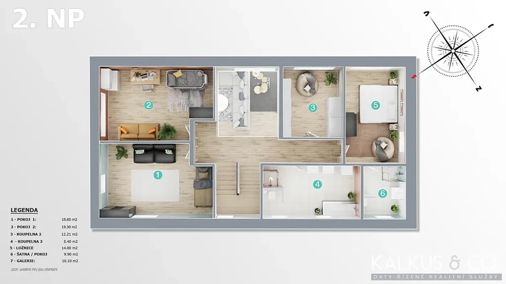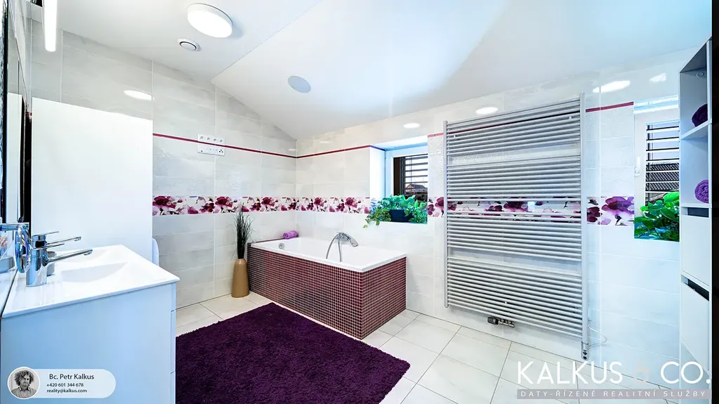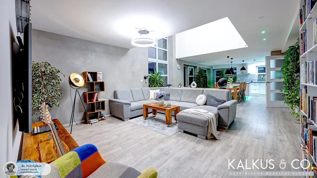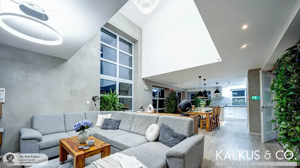 S dispozicí 6+kk a užitnou plochou 219 m² na rovinatém pozemku o výměře 1 530 m2 nabízí tento dům zázemí i pro větší rodinu. Tři koupelny, wellness místnost s přípravou pro saunu, vysoké stropy a otevřený prostor napříč dvěma podlažími vytvářejí dojem volnosti a vzdušnosti. Děti mají v patře své soukromí, přesto galeriový průhled z horní chodby do obytného prostoru zajišťuje, že rodina zůstává v kontaktu – doslova i symbolicky.