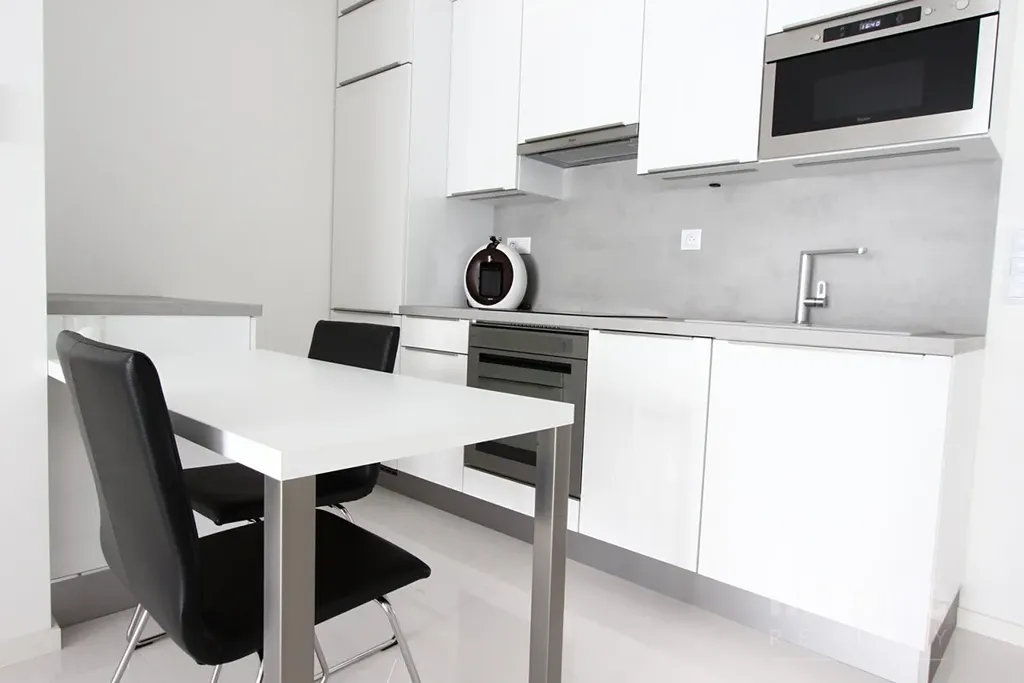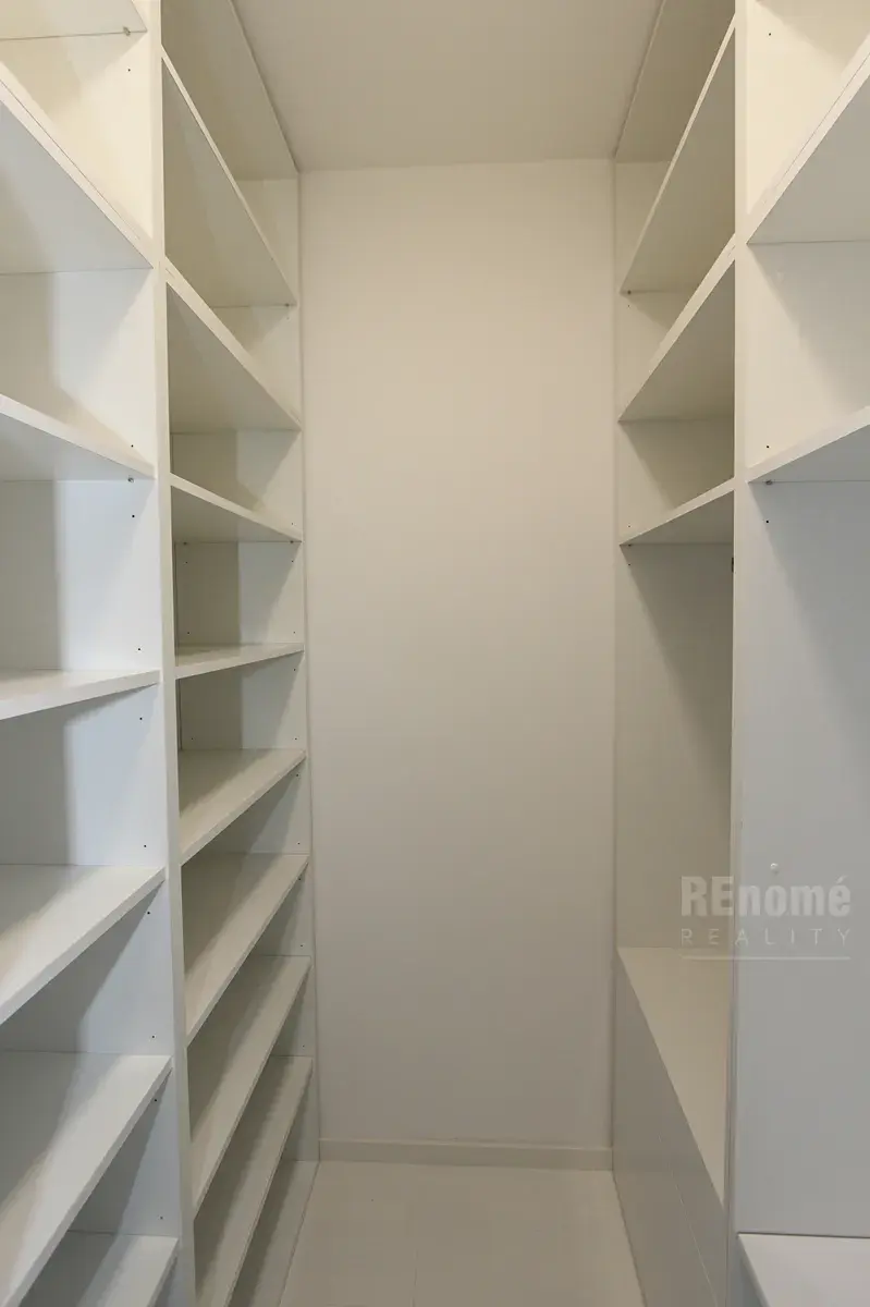 Nabízíme Vám od 1.2.2026 k pronájmu nadstandardně vybavený byt 2+kk (55 m2 s lodžií 10,5 m2 + sklep) v Rezidenci Trinity v Karlíně na nábřeží Vltavy. Byt je umístěn v 6NP a sestává z obývacího pokoje s kuchyňským koutem (30 m2), ložnicí se samostatnou šatnou vybavenou policovým systémem na míru (celkem 17 m2), koupelnou s wc (4,4 m2) a předsíní (4 m2). Byt je díky velkoplošným oknům velice světlý, je orientován na JZ s výhledem na Pražský hrad. Z obou pokojů se vychází na prostornou lodžii (10,5 m2), která se rozkládá po celé šířce bytu. Okna až po zem jsou opatřena venkovními horizontálními žaluziemi v antracitové barvě na dálkové ovládání, vnitřní hliníkové horizontální žaluzie jsou stříbrné. Podlahy jsou, v obývacím pokoji dřevěné - olše s povrchovou úpravou bílý keramický lesk, v ložnici dřevěná podlaha - jasan, v chodbě a koupelně šedá velkoformátová dlažba.