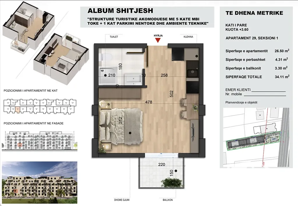 Nabízíme vám 1+kk, o ploše 34.11 m2, v atraktivní pobřežní oblasti Golemu, jen 250m od moře, kde vzniká moderní rezidenční komplex navržený pro ty, kteří hledají kvalitní bydlení v příjemném prostředí s výbornou dostupností i vysokým investičním potenciálem. Architektura projektu je založena na čistých liniích, nadčasové eleganci a harmonickém propojení s okolní zelení. Součástí jsou také vizualizace interiérů, díky nimž si lze snadno představit atmosféru a styl budoucího domova.