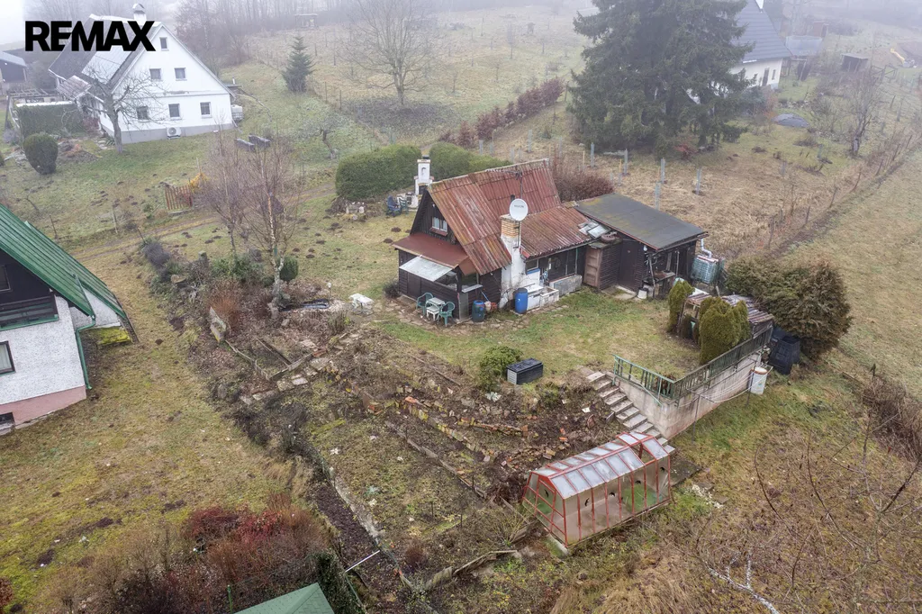 V chatě najdete zázemí pro spaní čtyř osob, menší kuchyňku a také kůlnu vhodnou pro uskladnění zahradního nářadí nebo menší dílnu. K relaxaci dobře poslouží venkovní posezení vhodné pro chvíle odpočinku nebo setkávání s rodinou a přáteli.