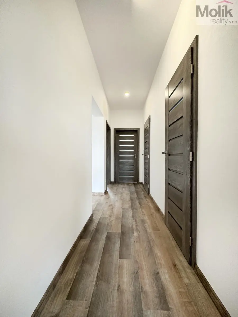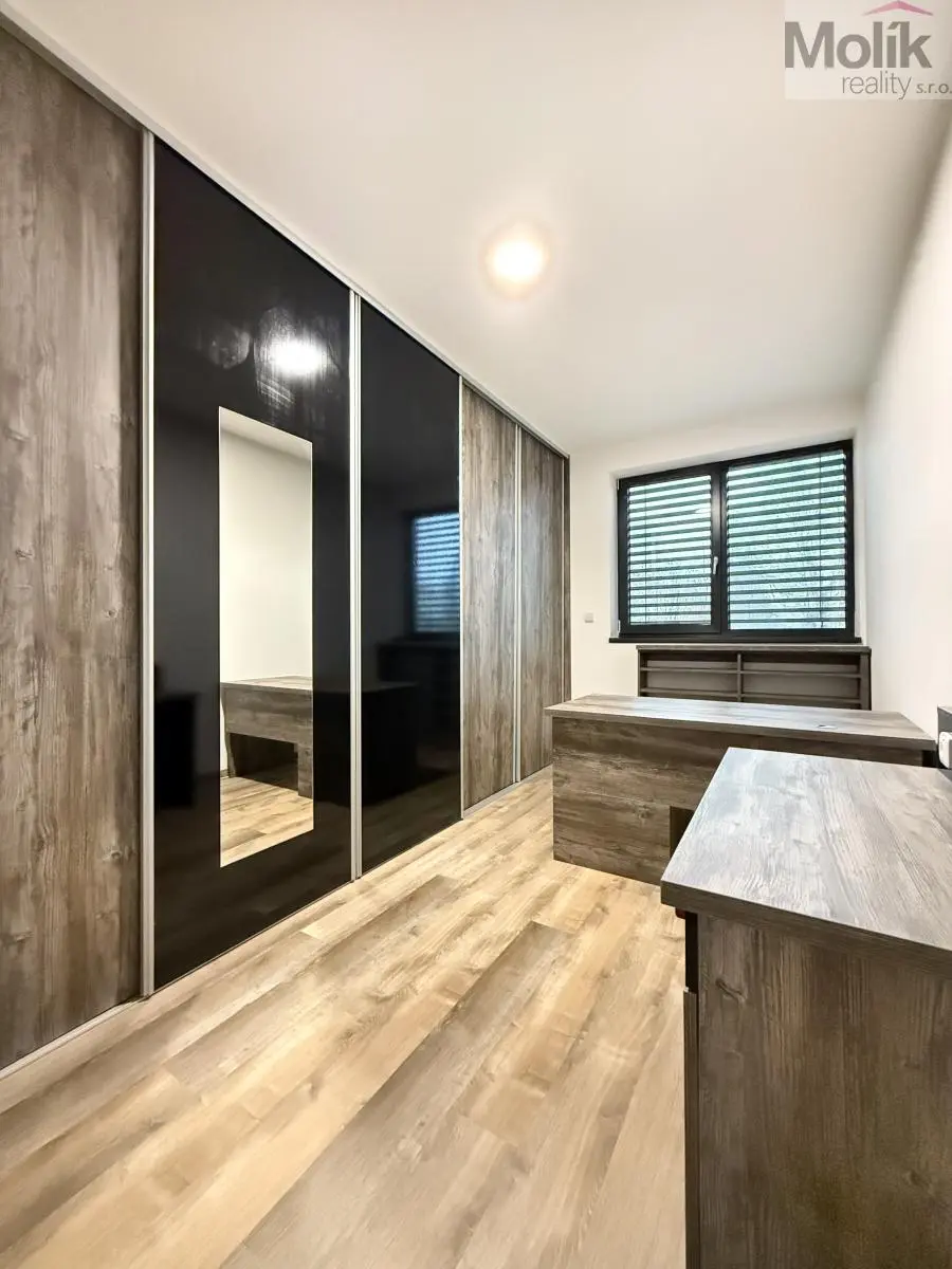 Nabízíme k pronájmu moderní, jednopodlažní nízkoenergetický rodinný dům ve tvaru L o dispozici 4+kk s podlahovou plochou 114 m2, situovaný v klidné části města Dubí u Teplic, na úpatí Krušných hor. K domu náleží pozemek o velikosti 864 m2 s terasou a zahradou.