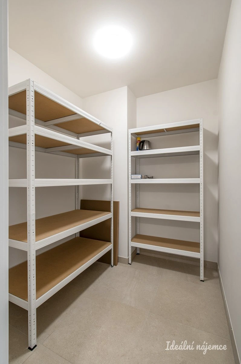 Byt se nabízí částečně vybavený. Kuchyně disponuje lednicí, myčkou, elektrickou troubou, varnou deskou, mikrovlnnou troubou a digestoří. V chodbě a ložnici nalezneme vestavné skříně a v praktické komoře jsou připraveny regály.