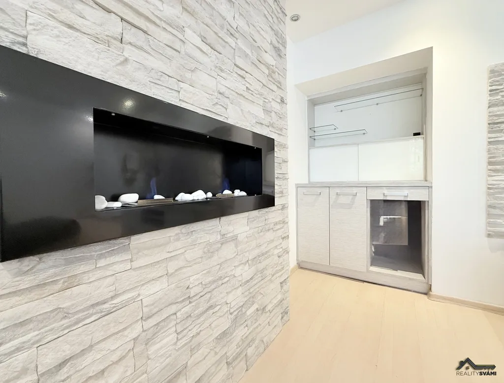 Nechybí ani ty. Je zde umístěných několik skříní, nebo například jídelní stůl, či posezení na balkóně. Z elektrospotřebičů poté vše doplňují 2 televizory a v obývacím pokoji je na romantické zimní večery připraven funkční lihový krb.