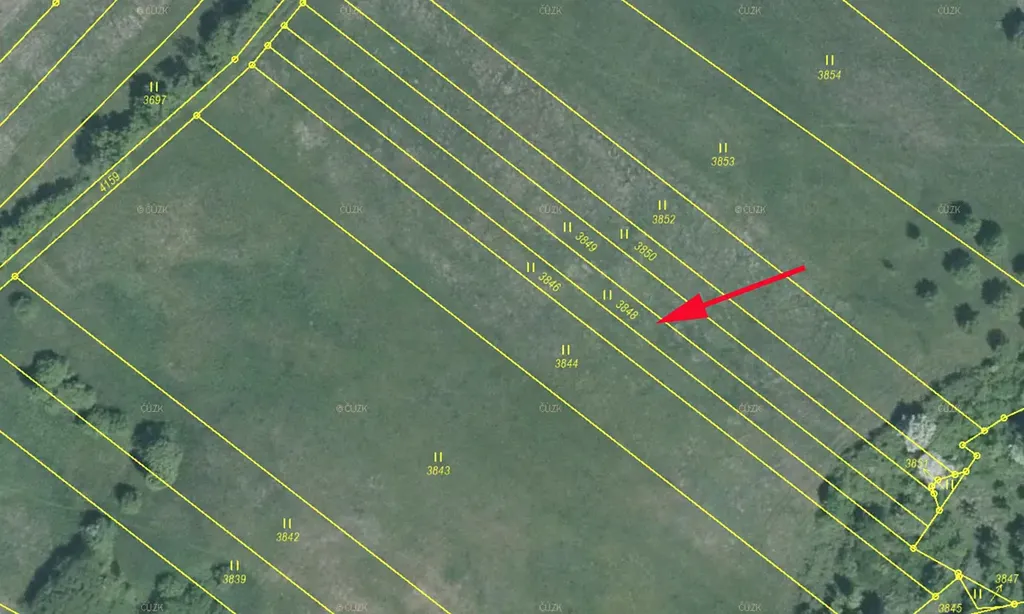 Prodáme pozemek, louku v k.ú. Nedašov, parc.č. 3848. Prodává se pouze náš podíl 1/4 (=25%) na celkové výměře 686m2. K pozemku vede obecní cesta.